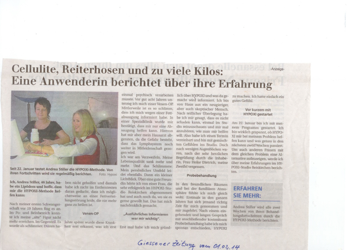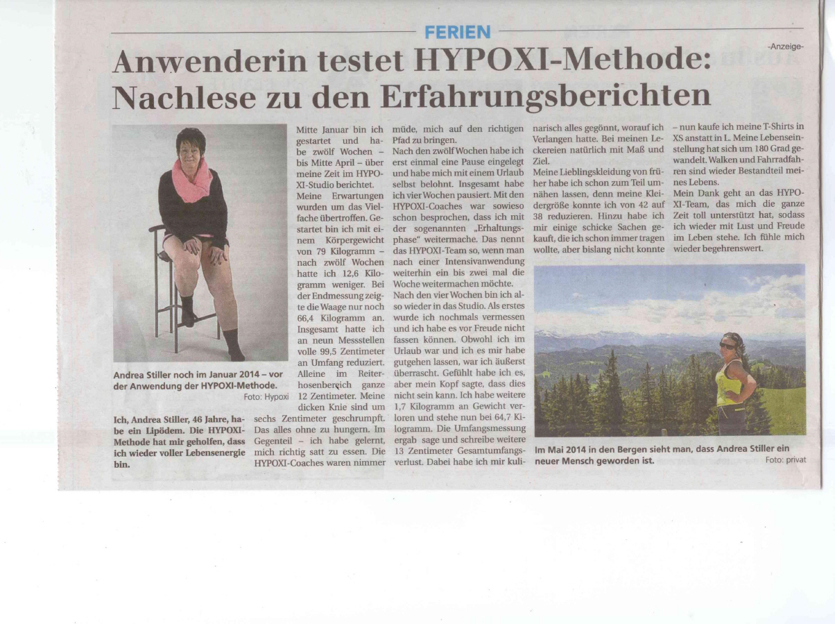 Fr. Stiller, Anwenderin im HYPOXI-Studio Reiskirchen, testete die HYPOXI-Methode. Auch sie leidet unter einer chronischen Fettverteilungsstörung und stand kurz vor einer Operation. Inwiefern ihr die HYPOXI-Methode helfen konnte, erfahren Sie in den folgenden Berichten...