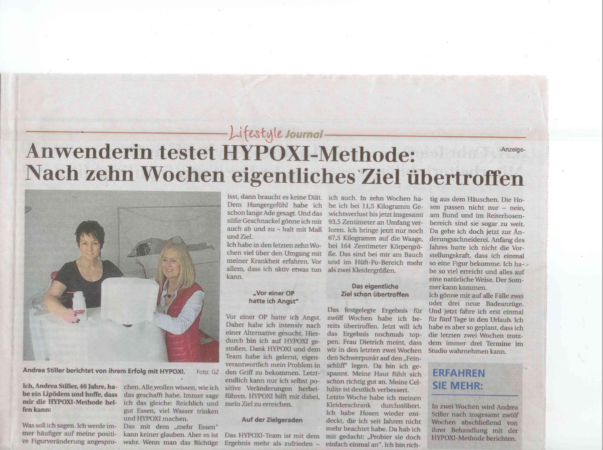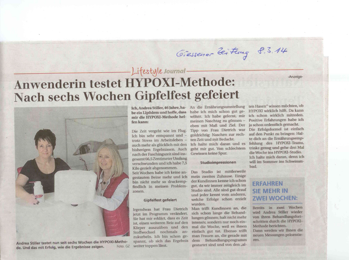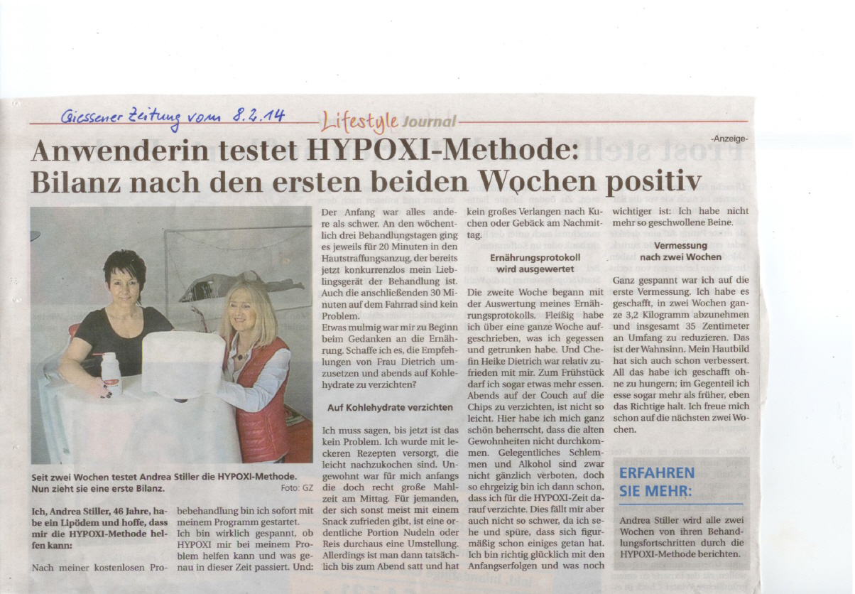 Die HYPOXI-Methode®, eine Kombination aus den Naturheilverfahren des Schröpfens und der Lymphdrainage, ruhiger Bewegung und richtiger Ernährung, welche zur gezielten Figurformung eingesetzt wird, ist aus den Medien schon bekannt.