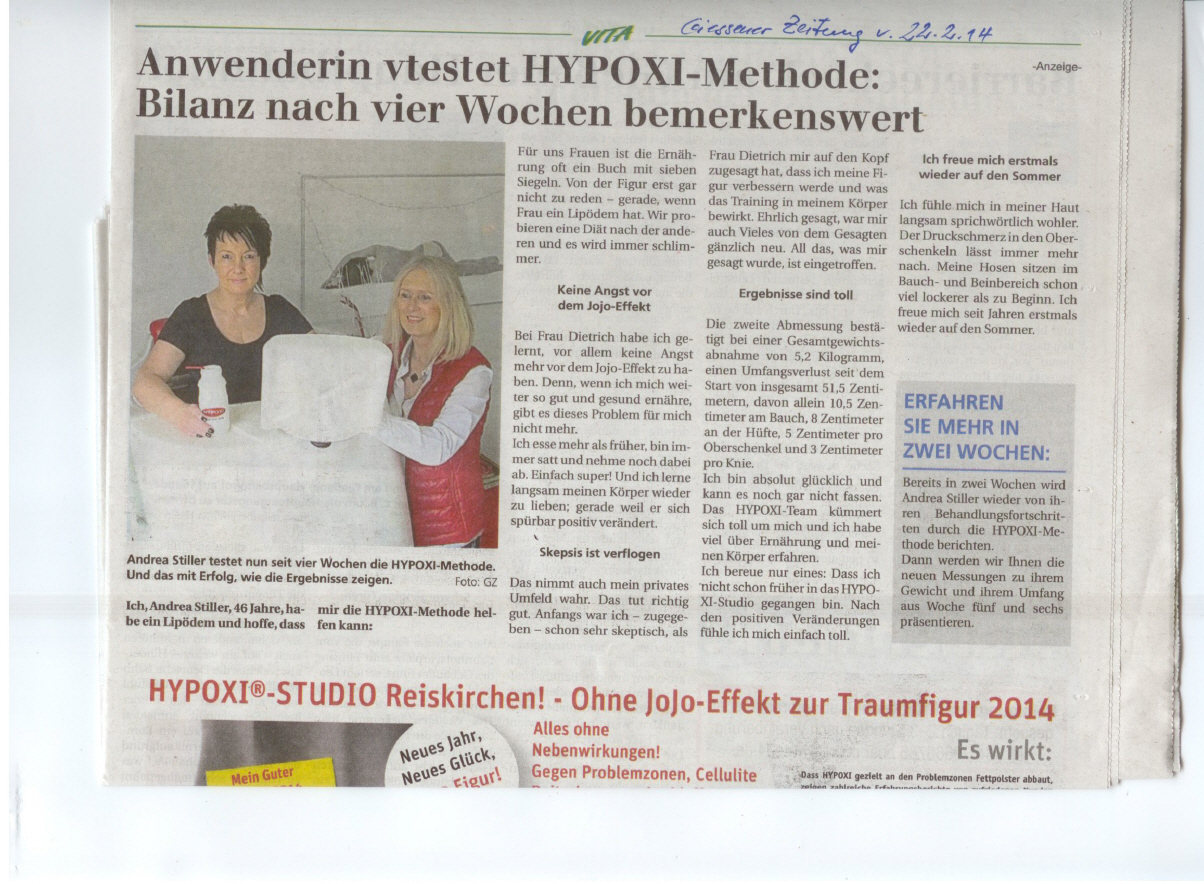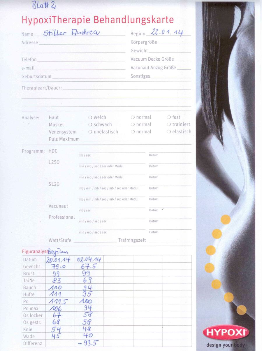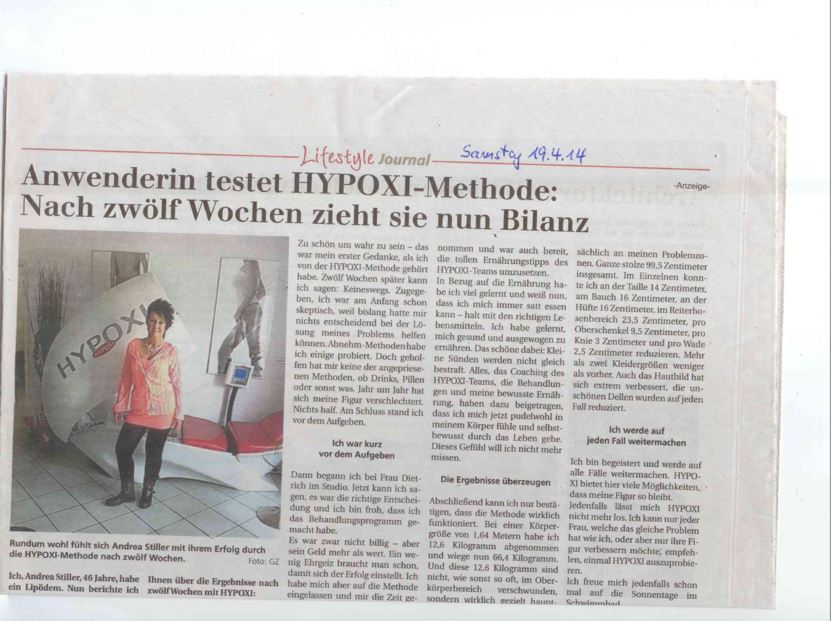 Die HYPOXI-Methode®, eine Kombination aus den Naturheilverfahren des Schröpfens und der Lymphdrainage, ruhiger Bewegung und richtiger Ernährung, welche zur gezielten Figurformung eingesetzt wird, ist aus den Medien schon bekannt.