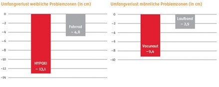 (HYPOXI-Gruppe: -13,1 cm, Kontrollgruppe: -4,8 cm).